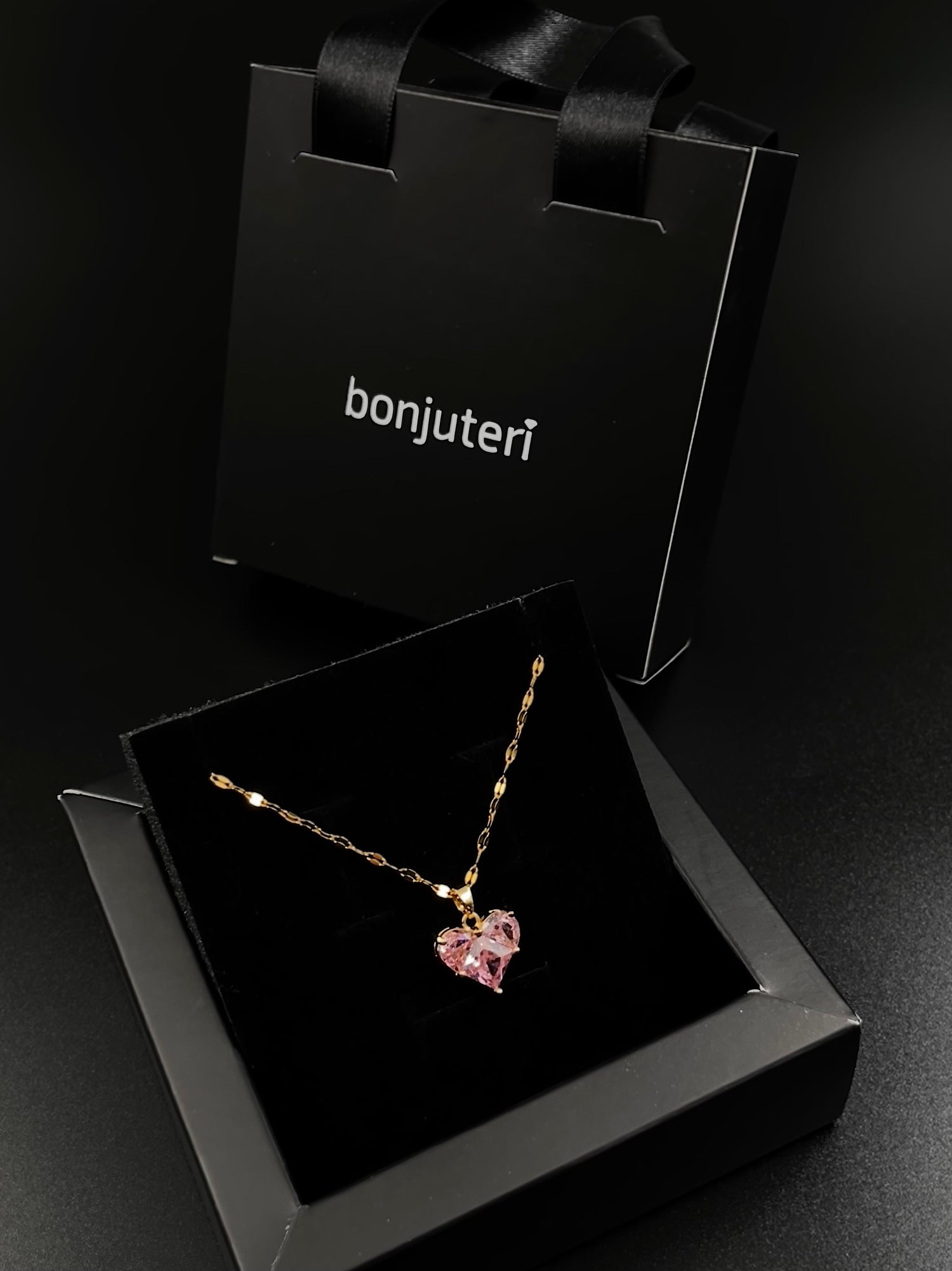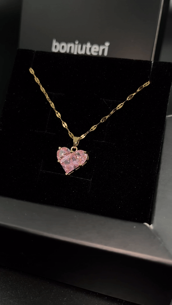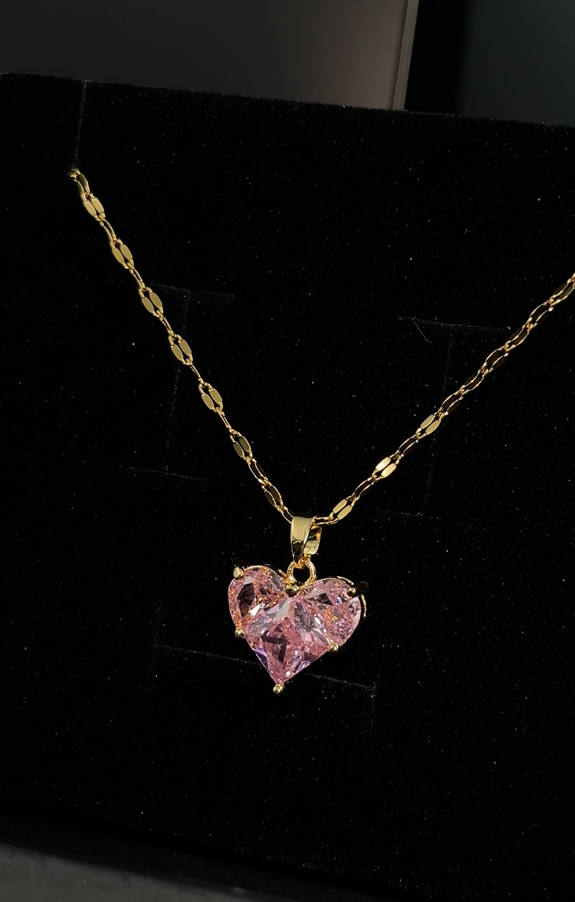 14 Ayar Altın Kaplama Pembe Kalp Kolye