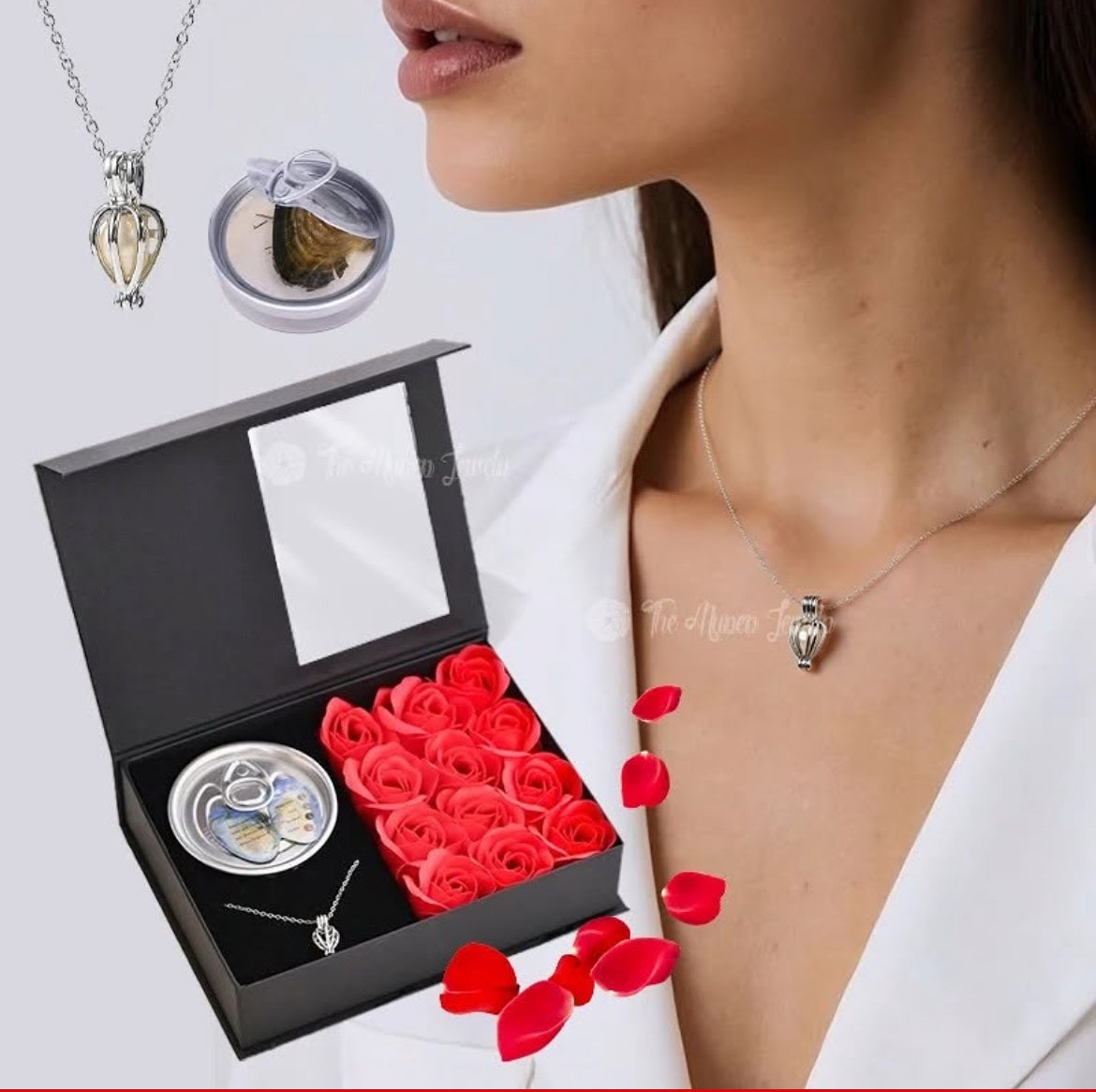 Güllü İstiridye İçinde Gerçek İnci Kolye Seti